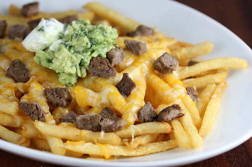 The dish consists of french fries that are topped with carne asada cheese and various. With Beans Guacamole Sour Cream Salsa Mexicana and Enchilado Cheese. Vegan RestaurantsIndian RestaurantsAsian Restaurants.